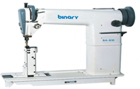 This adopts single straight needle. Jampan aligning thread, and vertical rotating spindle hock threads to form double-thread lock stitches, the upper and lower axis adipts spiraling bevel gear, cylinder seaming stand and rolling presser foot, which is convenient for vertical and zigzag seaming. Applicable to the corner seaming of leather shoes sports shoes and leather bags, hinged. Rotating shuttle hook; metal plating enhances the surfaceabrasionresistance.